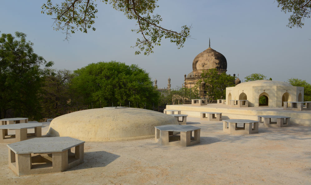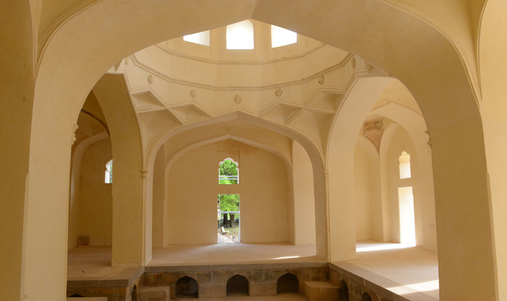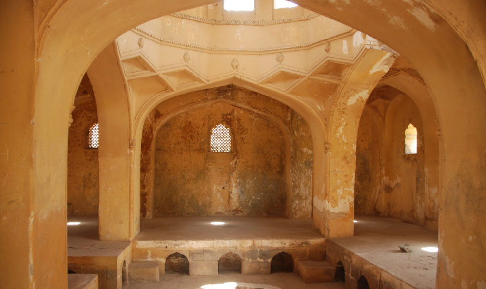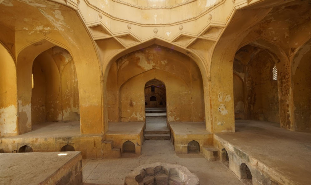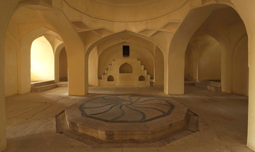 This elaborate Hammam, often mistaken for a mortuary bath, is one of the finest surviving Persian-type Hammams in India, with multiple chambers, cisterns, and mechanisms for hot and cold water. During a Peer Review meeting on site, an expert from Iran suggested it could be a functional rather than a funerary hammam.