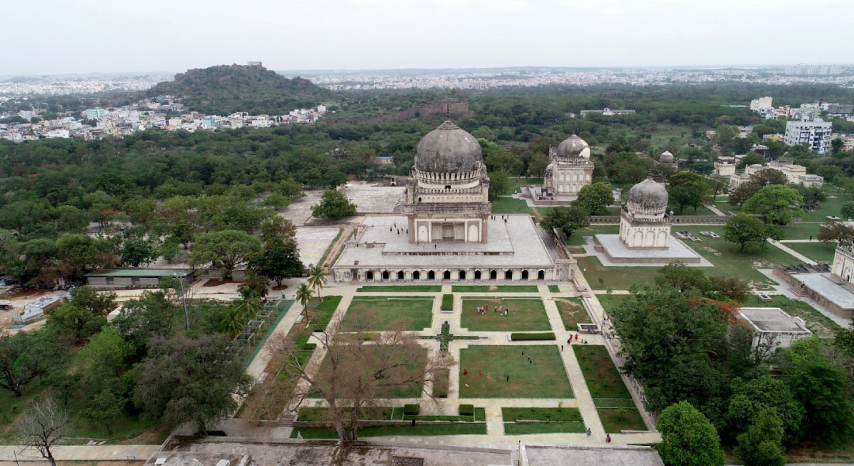 Archival images from the 1860s reveal that Muhammad Quli Qutb Shah's tomb was once set amidst a sprawling garden. This garden featured stone pillars that supported climbing vines and lush foliage.